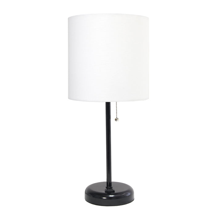Simple Designs 19.5" Sleek and Slender White Table Lamp with Charging Outlet