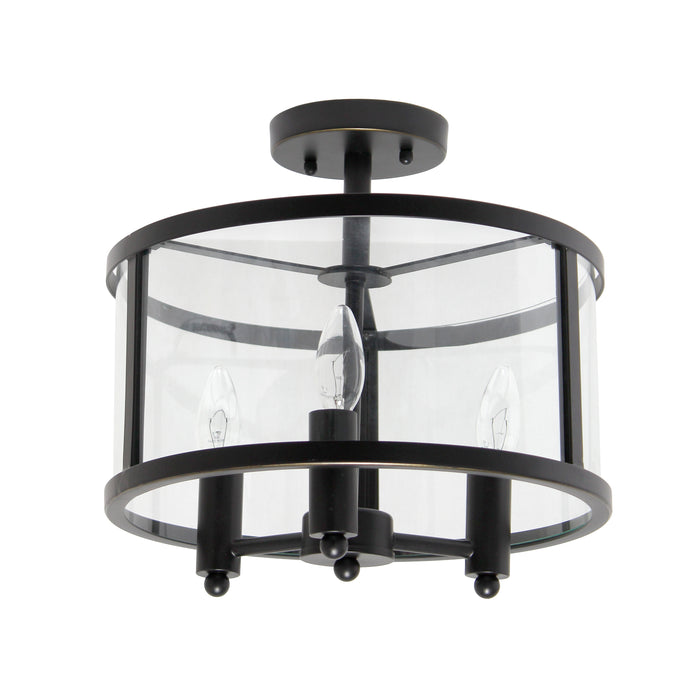Elegant Designs Medium 13" Iron and Glass Shade Traditional Farmhouse Industrial 3-Light Ceiling Mounted Round Semi-flushmount