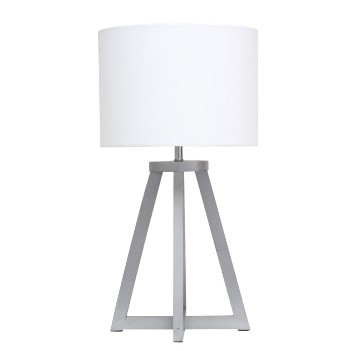 Simple Designs Interlocked Triangular Gray Wood Table Lamp with Black Fabric Shade