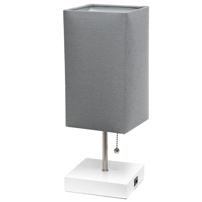 Simple Designs Petite White Stick Lamp with USB Charging Port and Fabric Shade