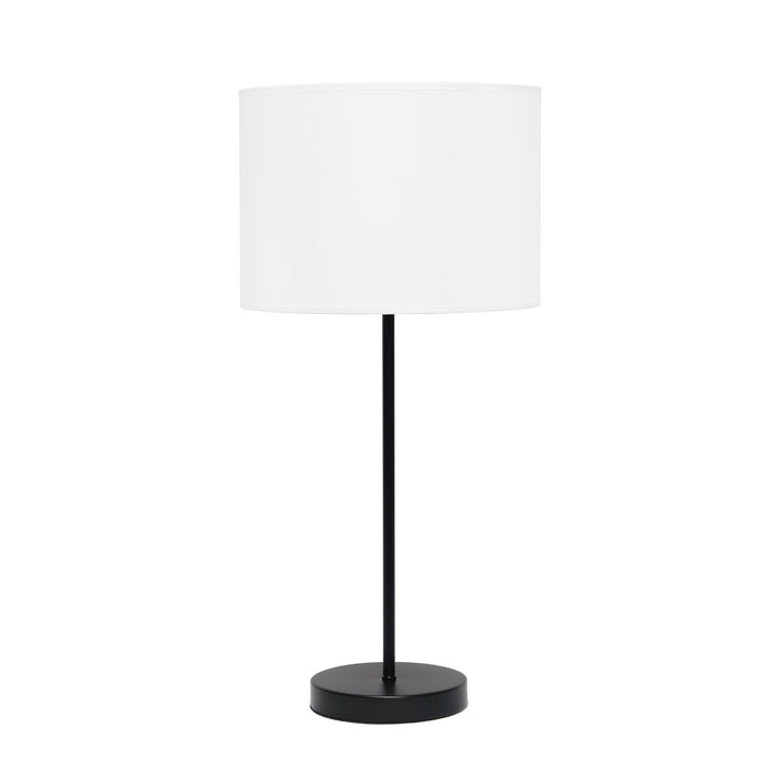 Simple Designs White Stick Lamp with USB charging port and Fabric Shade